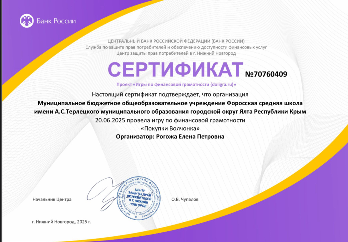 Муниципальное бюджетное общеобразовательное учреждение «Форосская средняя школа имени А.С.Терлецкого» муниципального округа город-курорт Ялта Республики Крым