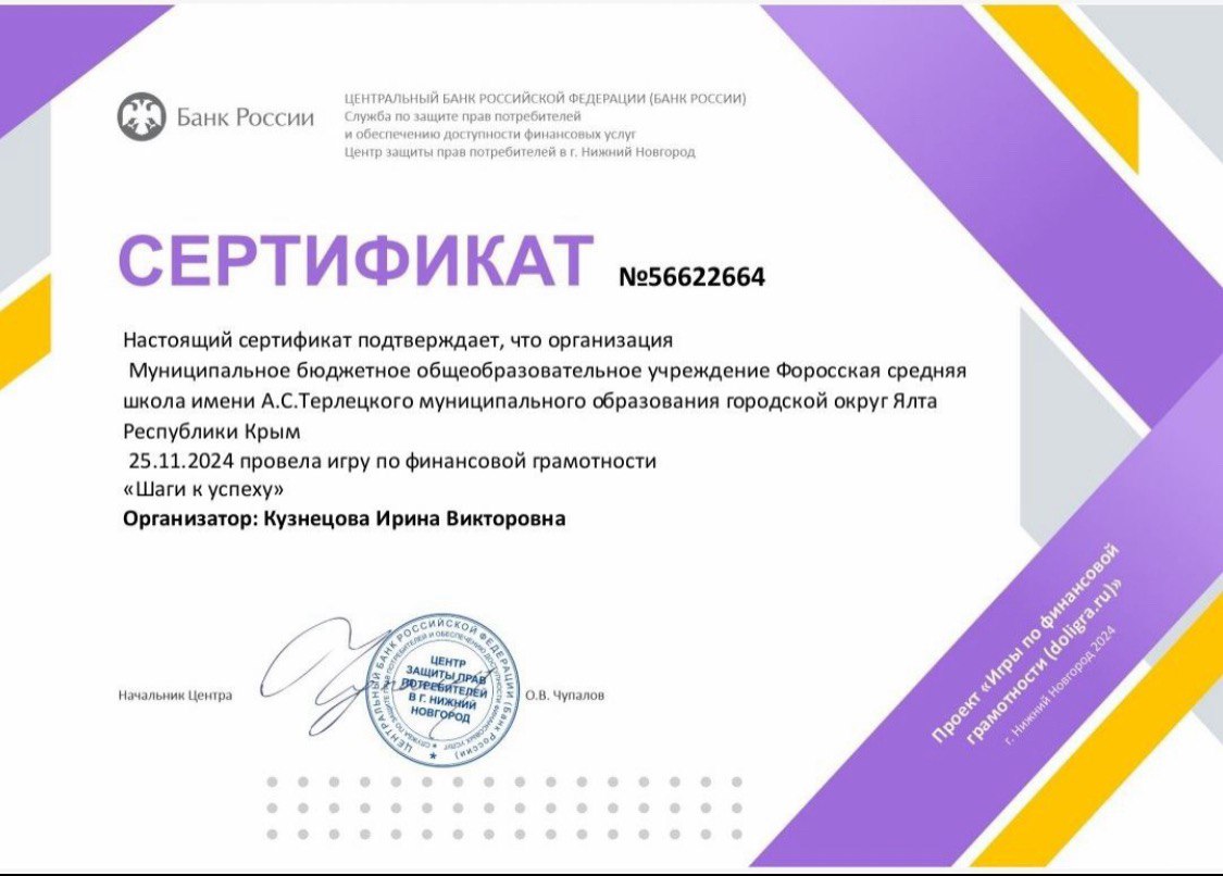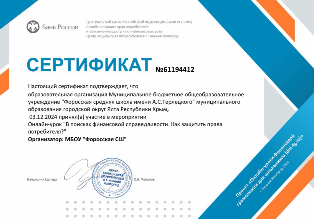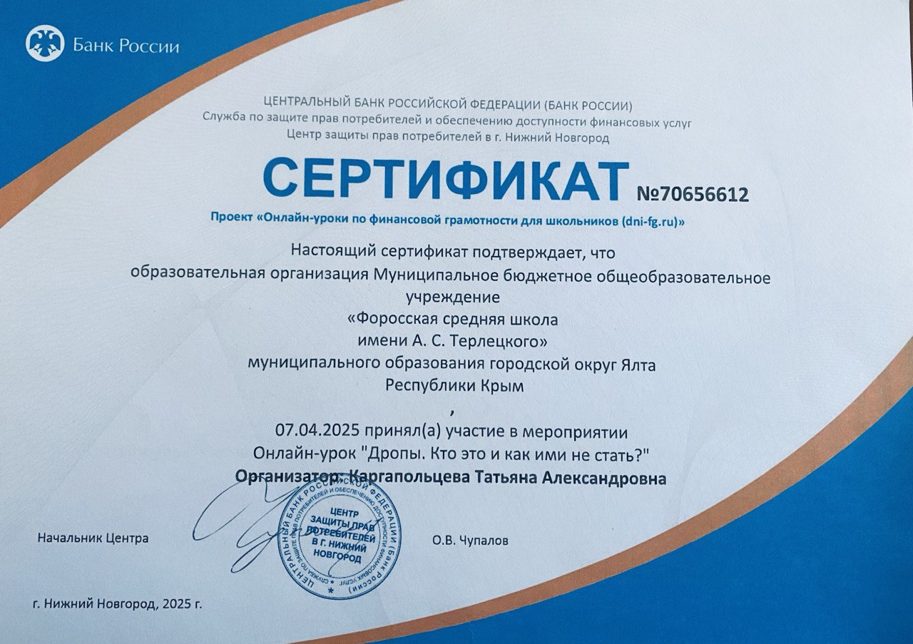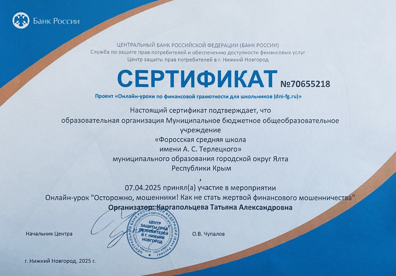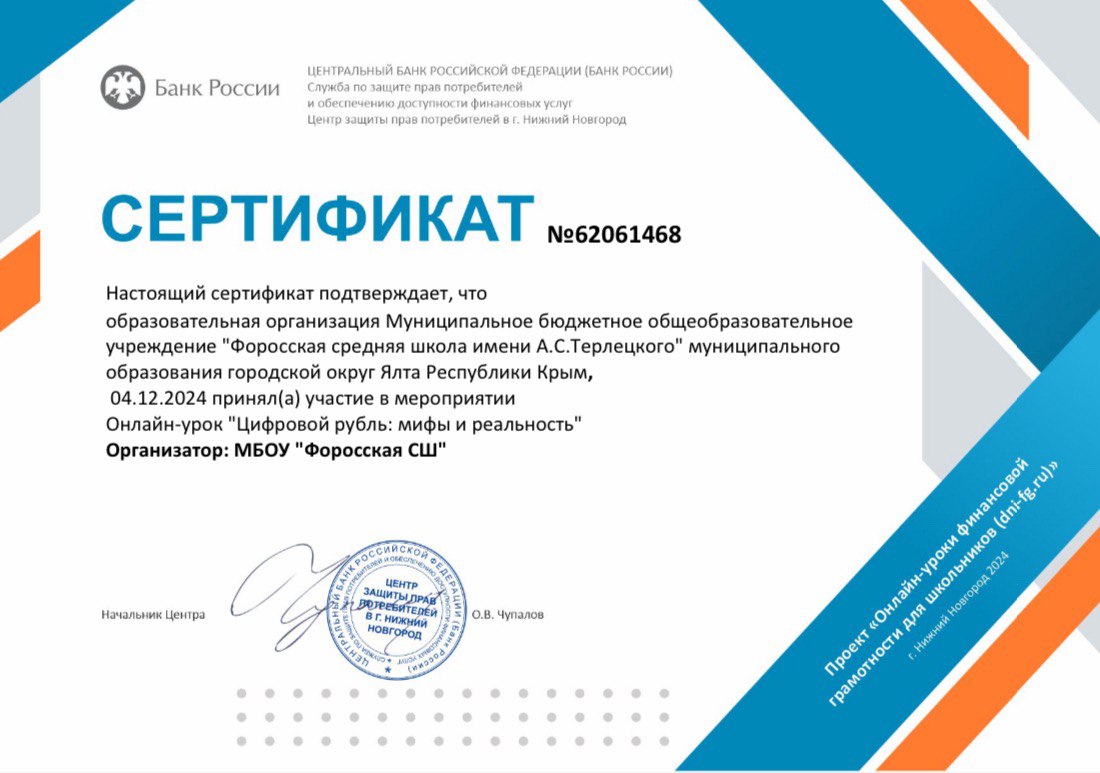 Муниципальное бюджетное общеобразовательное учреждение «Форосская средняя школа имени А.С.Терлецкого» муниципального округа город-курорт Ялта Республики Крым