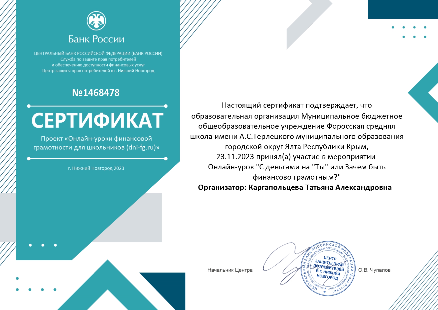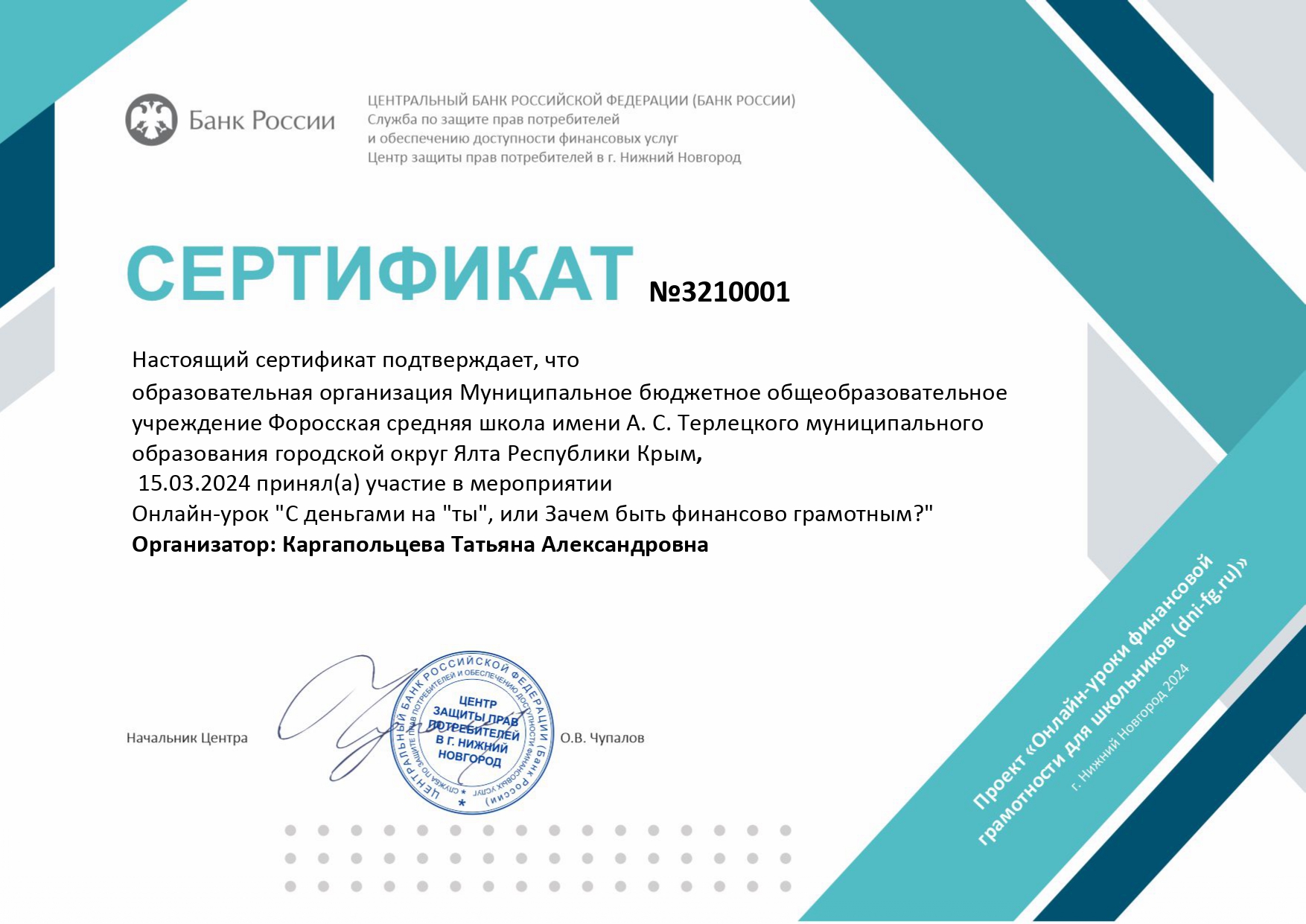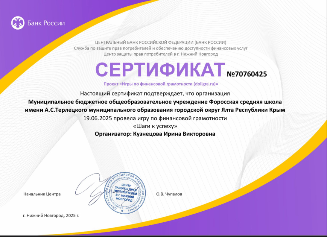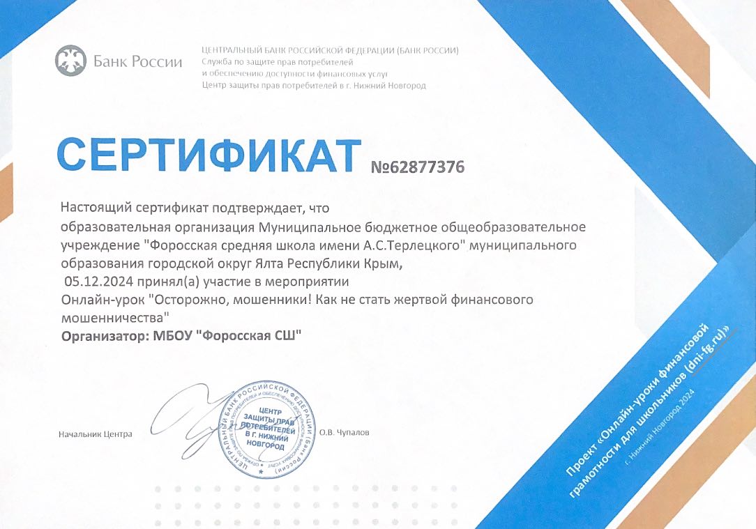 Муниципальное бюджетное общеобразовательное учреждение «Форосская средняя школа имени А.С.Терлецкого» муниципального округа город-курорт Ялта Республики Крым